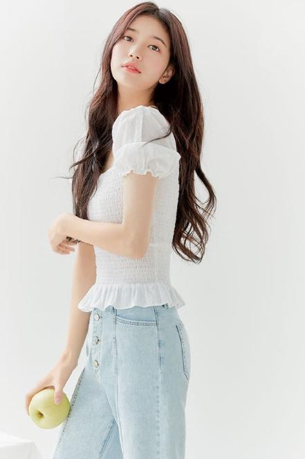 A black short-sleeved top paired with jeans, and a refreshing hairstyle make the overall look more refined. Pei Suzy looks stunningly beautiful.