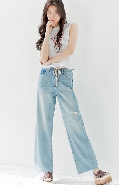 The purple T-shirt looks very noble, although It is said that this is just a simple T-shirt, but when it is worn on Bae Suzy, it is no longer that simple. Paired with jeans, the overall look is perfect. You can’t find any flaws at all. It’s perfect.