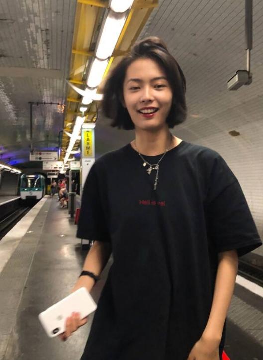 The pink shirt has a girlish atmosphere. Zhao Jiali chose simple short hair as a foil, making her look very fresh and natural.