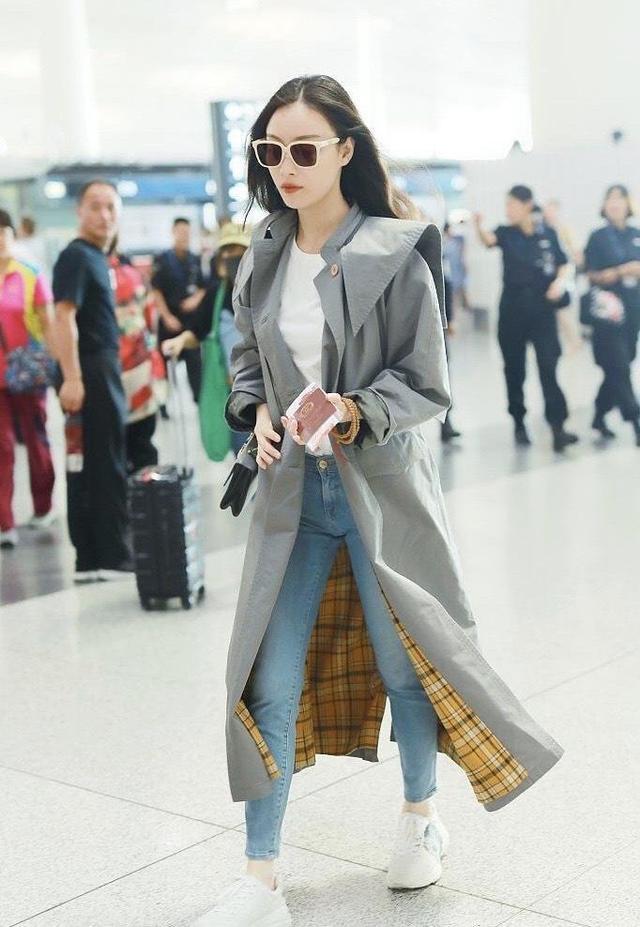 Ni Ni’s figure is tall enough, and her long windbreaker can highlight her noble temperament. The loose style will make you look slimmer and can be worn by girls of all shapes. The yellow plaid lining of the windbreaker is atmospheric and bright, with strong color contrast and a sense of fashion.