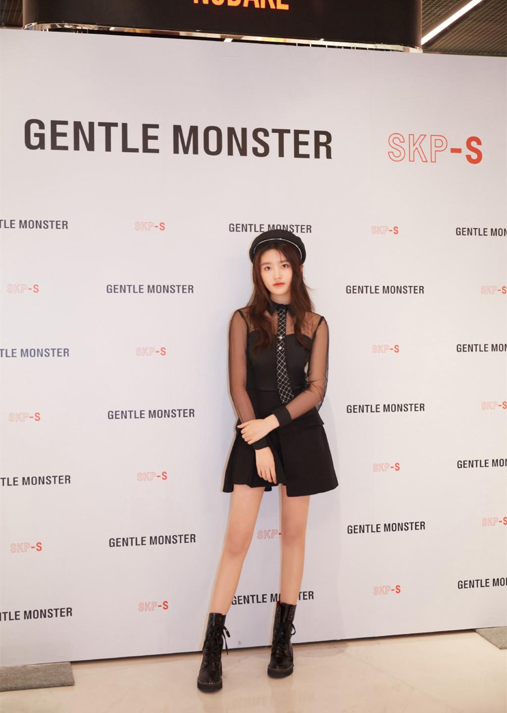 A transparent little black suspender skirt paired with Martin boots and a black navy hat make Chai Wei look like a girl group! Support C-position debut~