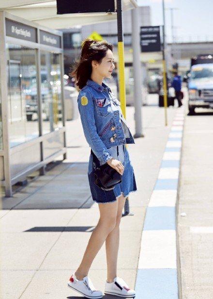 There is also a denim suit, paired with a high ponytail, which is not only clean and neat, but also youthful, especially with the help of white shoes.
