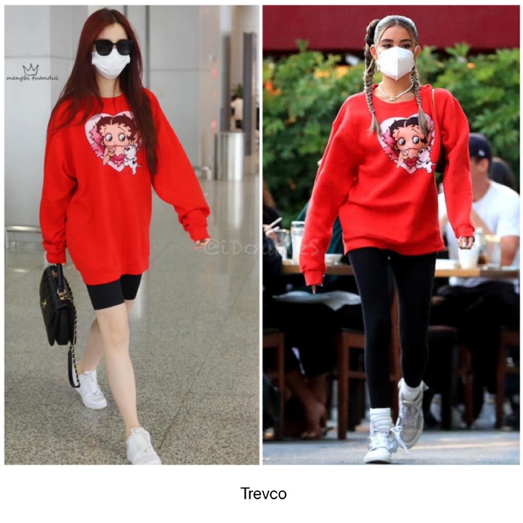 It’s not awkward to wear matching clothes! The key is who wears it! The protagonists of today’s matching shirts are our Yu Shuxin and Justin Bieber’s junior sister, Beer Girl, wearing the same printed red sweatshirt. Yu Shuxin, who shows off her cute girl image, paired it with a pair of cycling pants, which is sporty and casual, while Beer Girl wears it with Wearing a pair of tight black pants, it also looks sporty. Can’t you tell the difference between this outfit? It doesn’t matter! Let’s take a look at their other outfits~