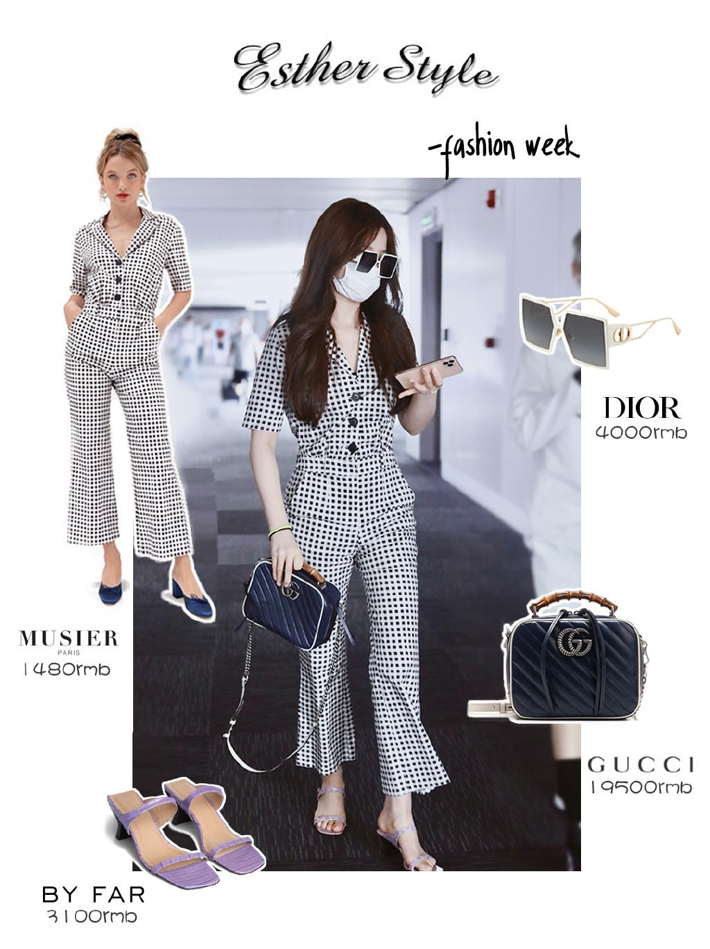 This jumpsuit has a little trick. It looks like plaid but is actually polka dots, but the temperament is the same, V The collar and the eight-point flared trouser legs reveal the slender ankles and make them look slimmer. It is indeed fashionable when paired with Mule sandals.