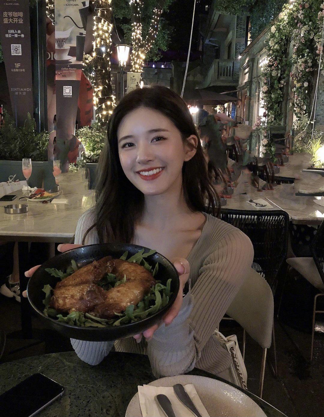 Zhao Lusi is fashionable and casual in a gray real top, slimming The knitted sweater shows her perfect figure, her long hair shows her feminine tenderness, her sweet smile is very healing, and Zhao Lusi holding the dishes is as touching as an angel on earth. Do you like it?