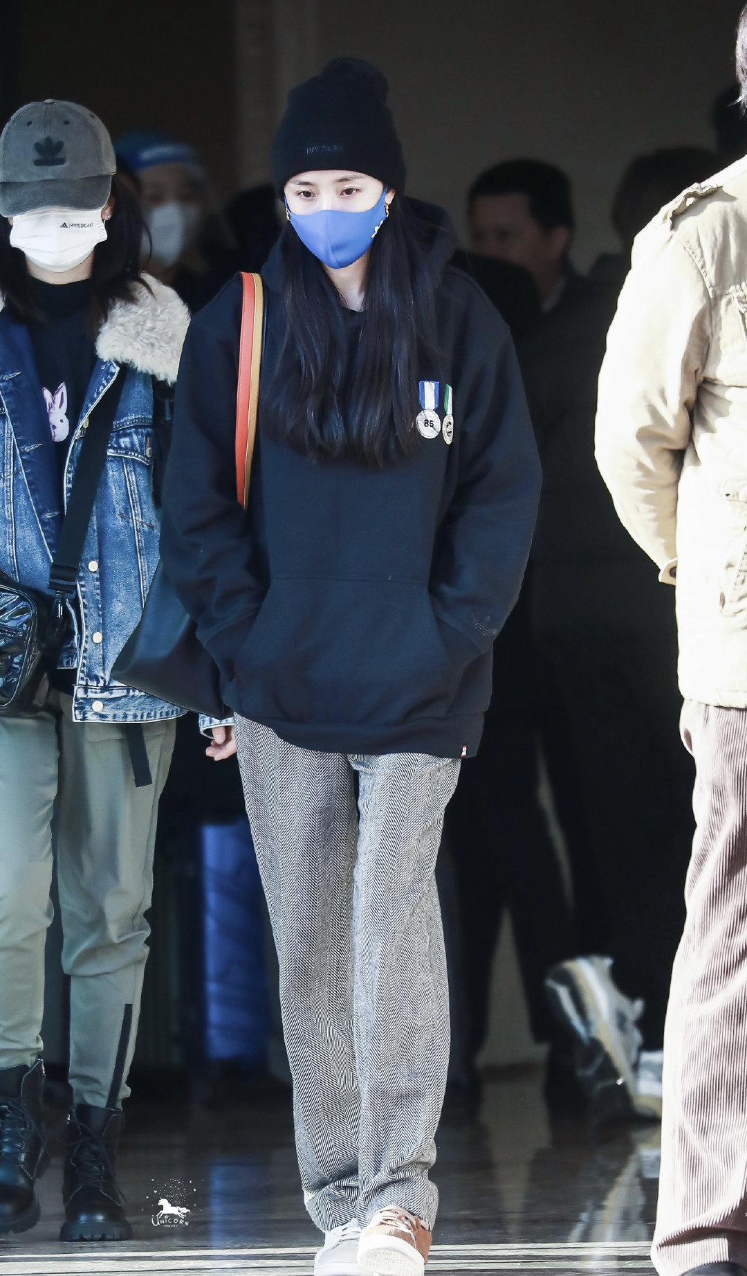On that day, Yang Mi had long hair that looked very elegant. She wore a black knitted hat on her head. In the cold winter, the knitted hat can be worn For the purpose of keeping warm, Yang Mi, wearing a blue mask, is eye-catching in a comfortable outfit, with gold earrings on her ears. Such a simple and fashionable look is worth having!