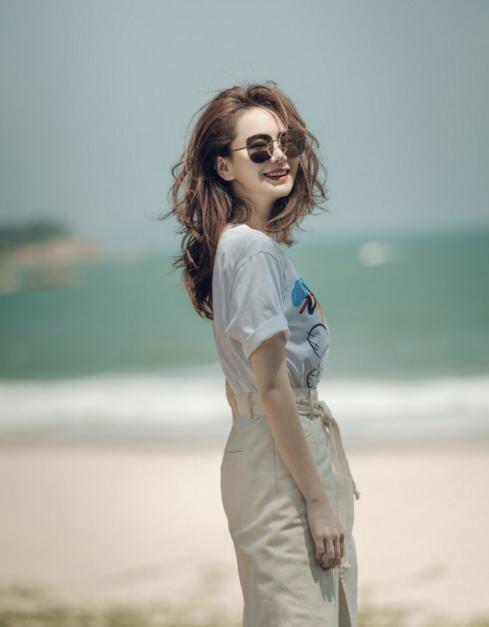 It must be small The most common thing used by friends is a white T-shirt and long jeans. It is true that this kind of outfit is relatively simple and clean, but some friends may be tired of this kind of outfit. You might as well learn some tips from Reba and wear it underneath. Wear a sun-proof tight-fitting top. The thin material will not make you look stuffy, and the patterned design adds a lot of fun.
