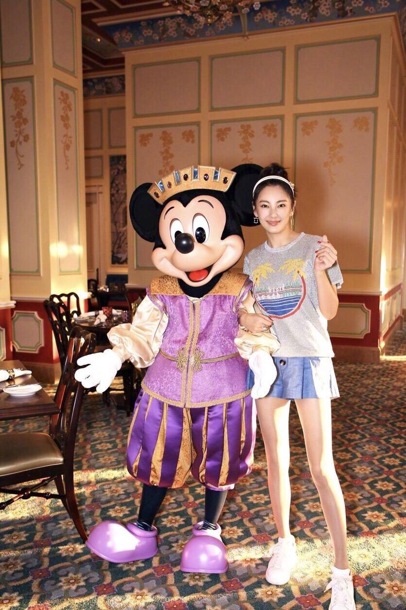 Zhang Yuqi, who traveled to Disneyland, transformed into a child this time. Her outfit is also very cute. She tied her hair up with a hair tie and generously exposed her facial features. The upper body is wearing a gray printed T-shirt, which is leisurely and cute. The lower body is Wear a blue short skirt to show off your slender legs, sexy yet cute.