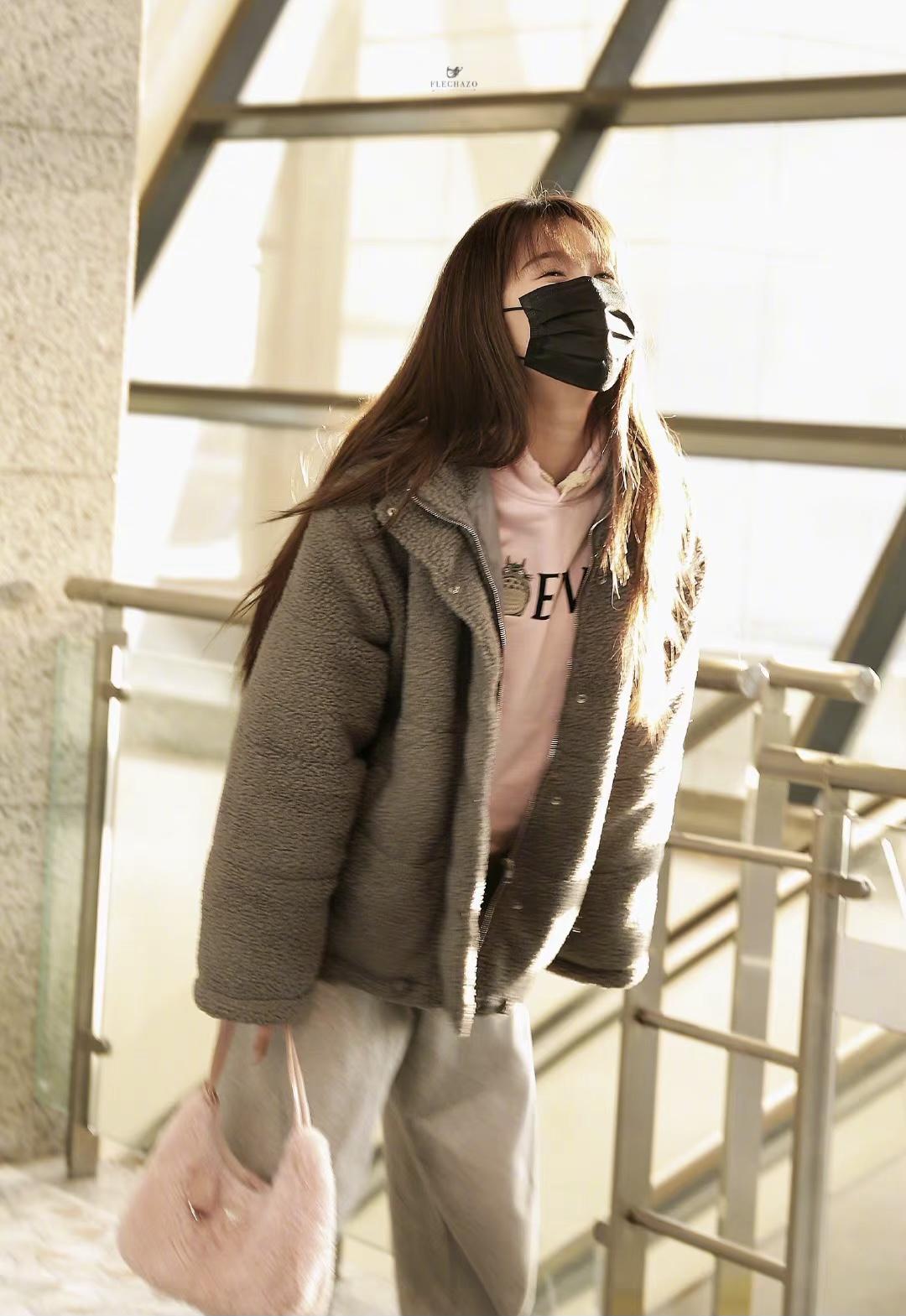 Yu Shuxin wears a gray plush jacket that is simple and fashionable. The plush material of the jacket is also super warm. Yu Shuxin’s inner choice is a pink hooded sweatshirt, which is full of youthfulness. Her lower body is a gray Casual pants, a relaxed outfit that shows vitality, and the whole person is full of fashionable charm.