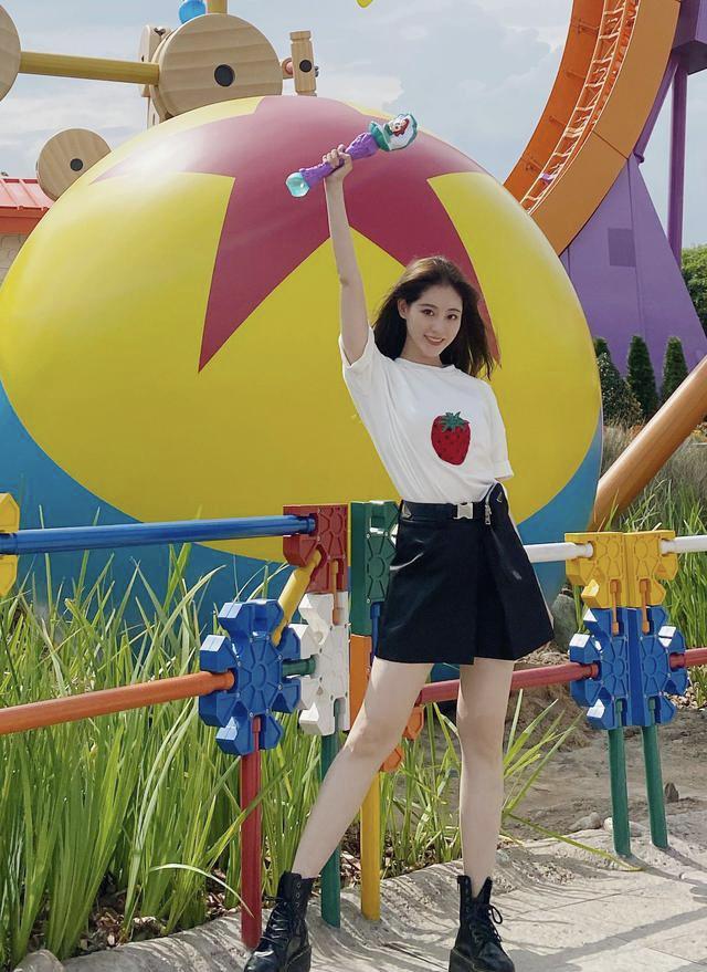 Zhu Xudan looks full of style in a white strawberry short-sleeved top She is full of energy, and her lower body is paired with black high-waisted shorts and boots, which makes her look delicate and charming. Zhu Xudan’s pair of slender legs under the camera are also super eye-catching. When she smiles, she also gives people a full feeling of sweetness. The whole look is both age-reducing and elegant. temperament.