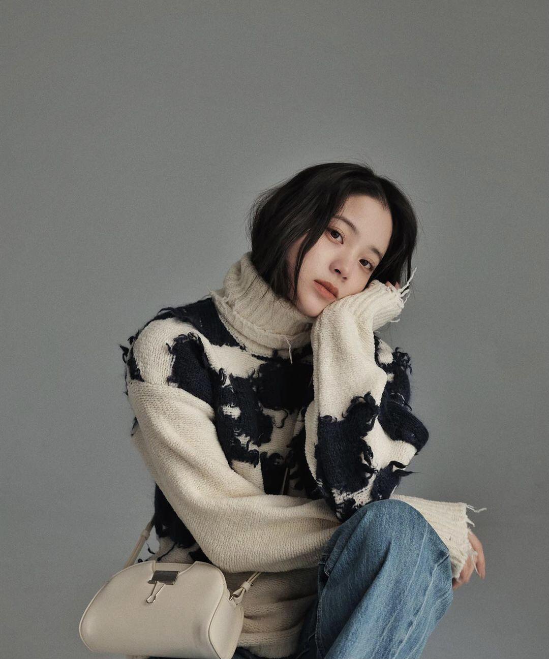 Ouyang Nana’s lower body is matched with a pair of jeans, which is comfortable and versatile. The off-white patchwork sweater is full of fashionable charm, and her hair is casually worn. Ouyang Nana also wore a vibrant makeup and carried a white bag. The whole look was simple and high-end.