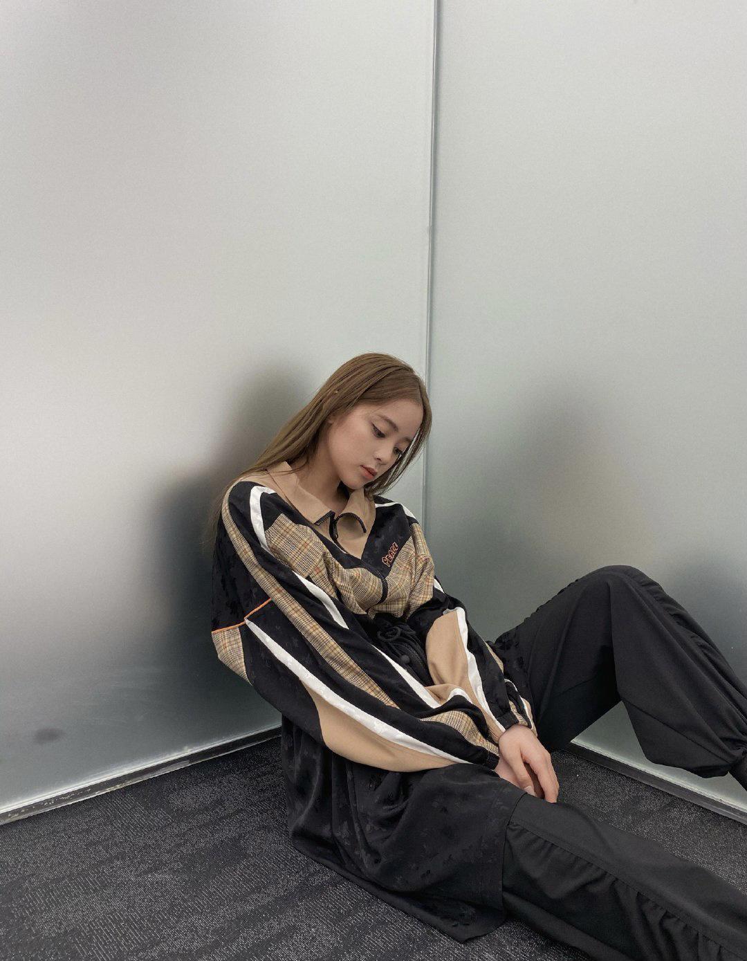 Ouyang Nana’s clothes are really outstanding She is becoming more and more tasteful. She is wearing a color-blocked loose shirt, which looks full of personality. The highly designed shirt gives people a cool feeling. Ouyang Nana under the camera looks attractive sitting on the ground. Eye-catching and fashionable.