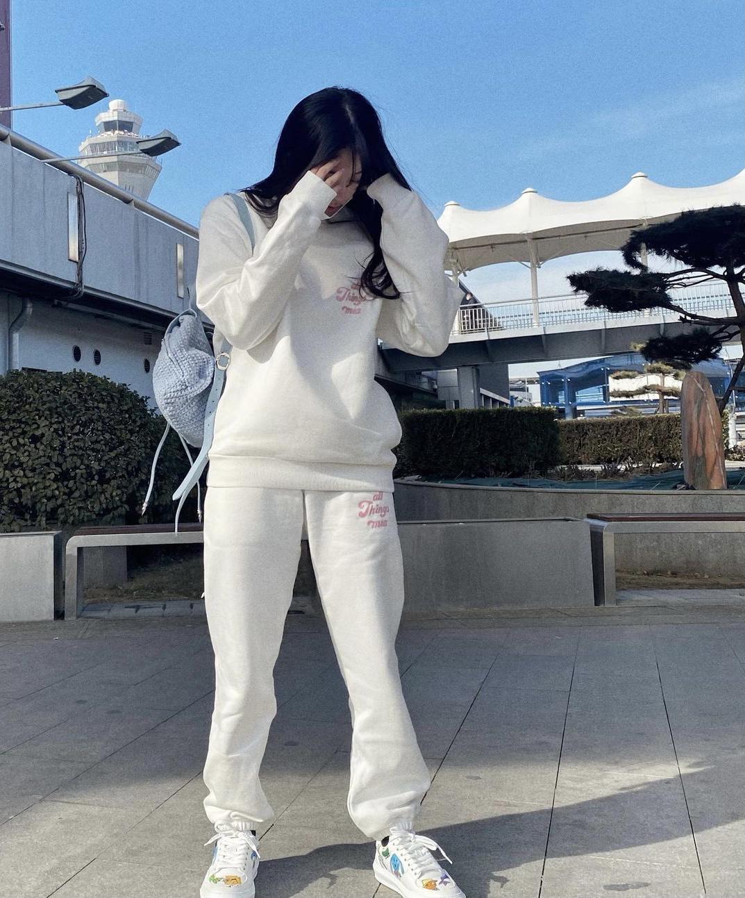 Ouyang Nana is wearing a white sweatshirt Very elegant, the sweatshirt is also a versatile and comfortable item. The lower body is matched with a pair of trousers with the same letters and a pair of graffiti white shoes on the feet. The whole white style looks full of youth and vitality. Ouyang Nana under the camera, all Look girly.