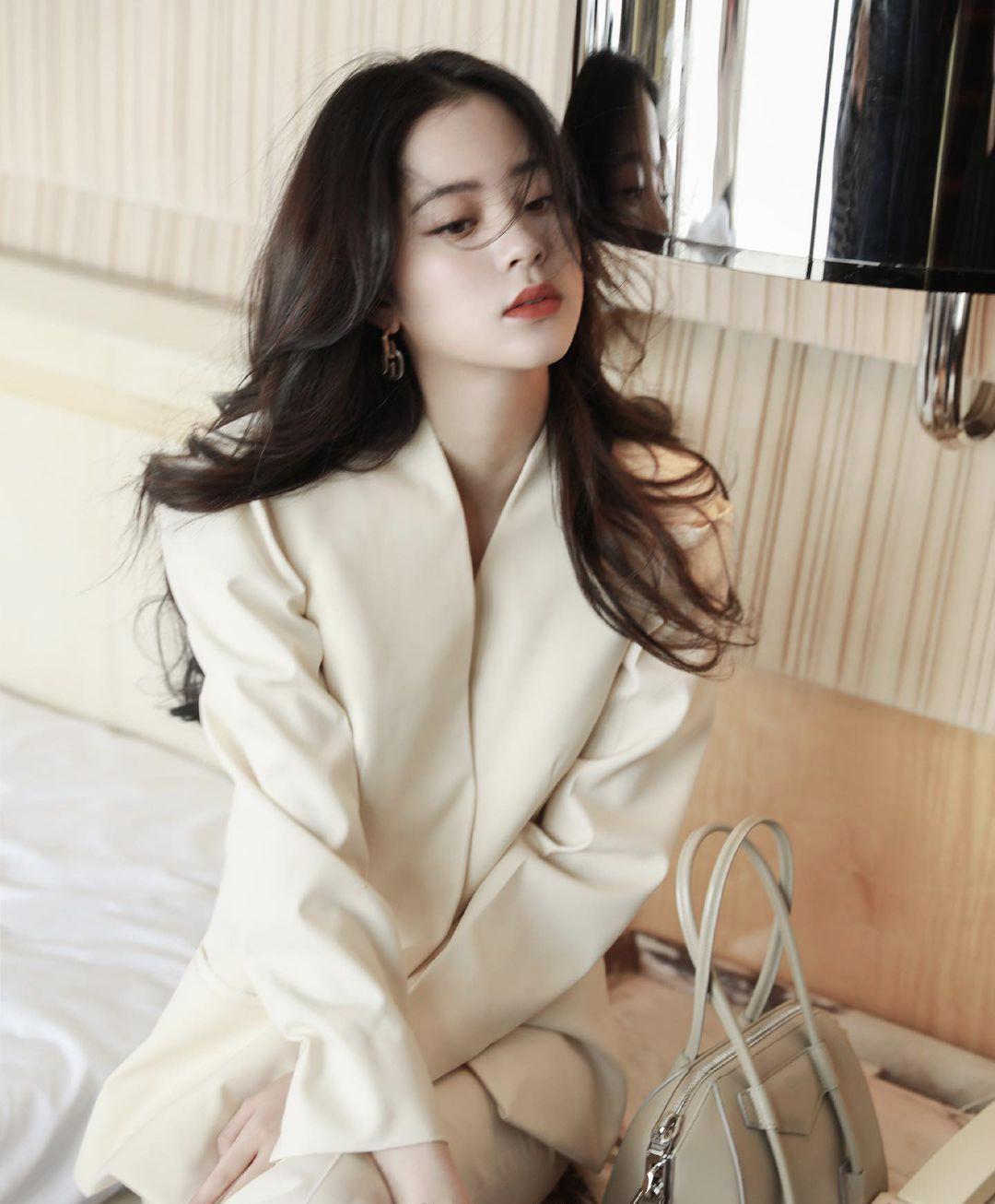 Ouyang Nana’s look is also full of elegance. Wearing a milk tea-colored jacket, she looks delicate and charming. Her lower body under the camera is matched with a pair of casual pants of the same color. The whole tone makes her very gentle and sweet. She also has exquisite earrings on her ears, which is full of fashion.