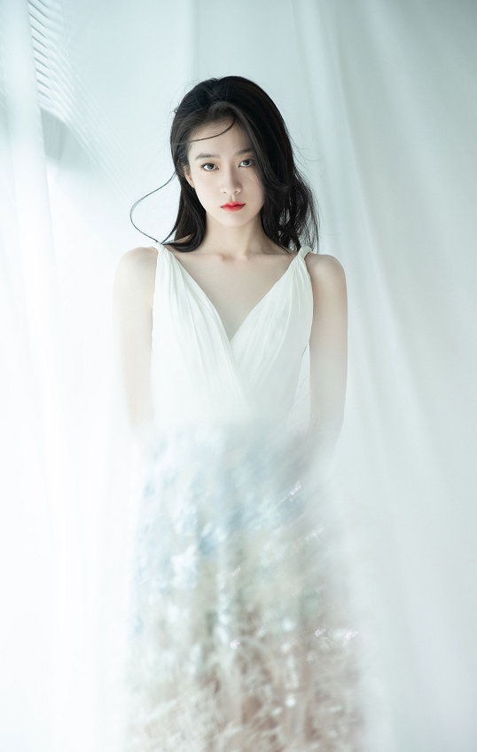 Look at this backless feather skirt, revealing the exquisite clavicle line and charming shoulder and neck curves. It combines sexy and pure temperament, and is full of atmosphere. . The long-lost long hair style is particularly gentle, and the exquisite makeup adds drama to the character, eye-catching and fashionable.