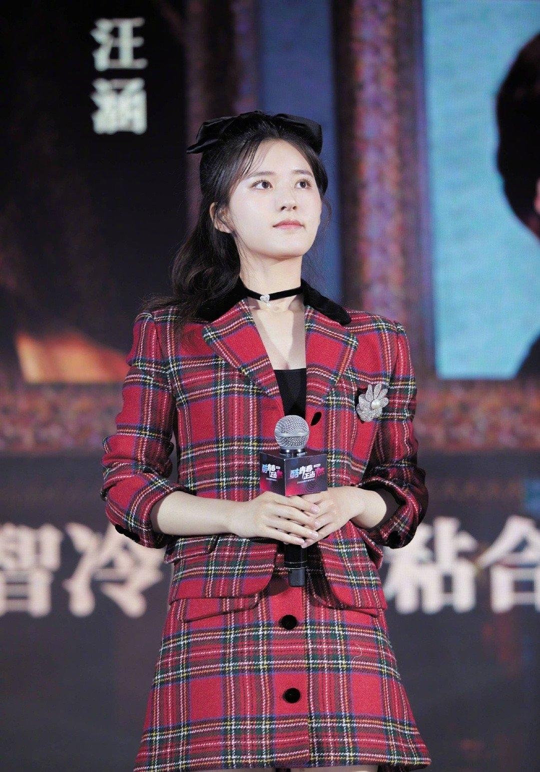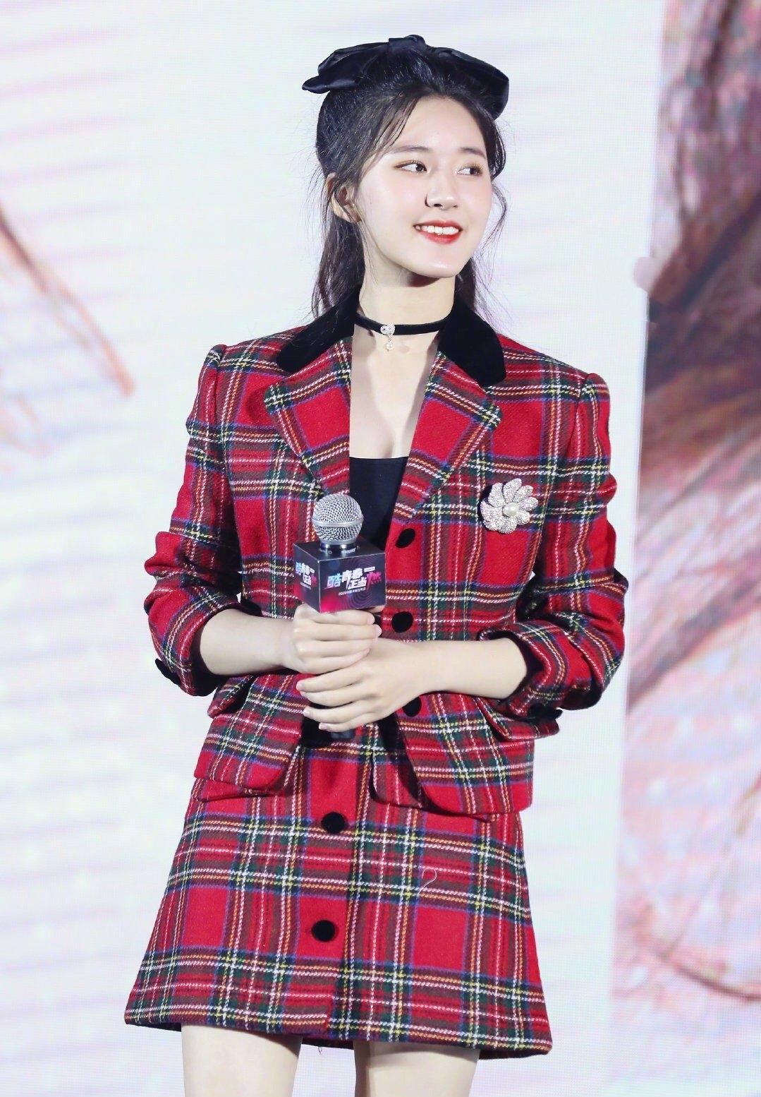Although I have a round face She looks fat but also very small. When attending an event, Zhao Lusi also tried a student outfit. The red plaid suit made her look even younger, and she dreamed back to 2014 every minute. The version she chose is also very good. It is not too sexy but has the bright temperament of a girl.