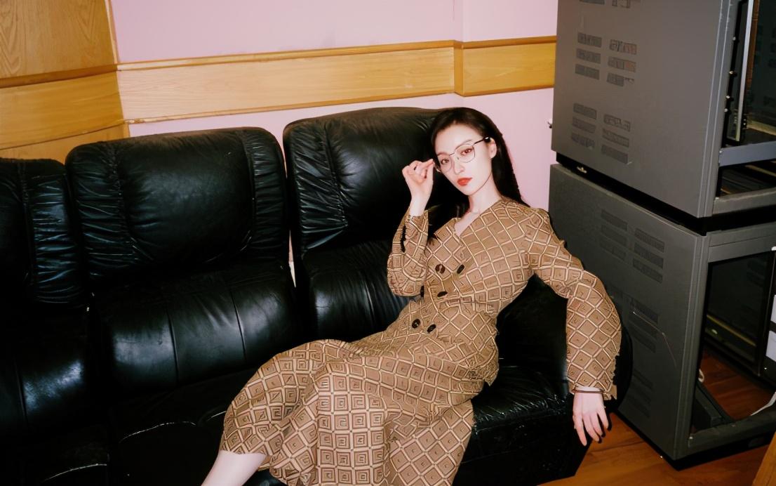 Ni Ni is really amazing in controlling the retro style, isn’t it? Ni Ni, who is sitting on the sofa, is wearing a yellow dress that shows off all her beauty The classic retro atmosphere is very charming. The small V-neck design vaguely shows Ni Ni’s smooth and beautiful neck line. Ni Ni did not choose too many single products to embellish. A pair of gold-rimmed glasses is a good embellishment. With this look, Ni Ni looks really aggressive, right? Her domineering aura overflows the screen.