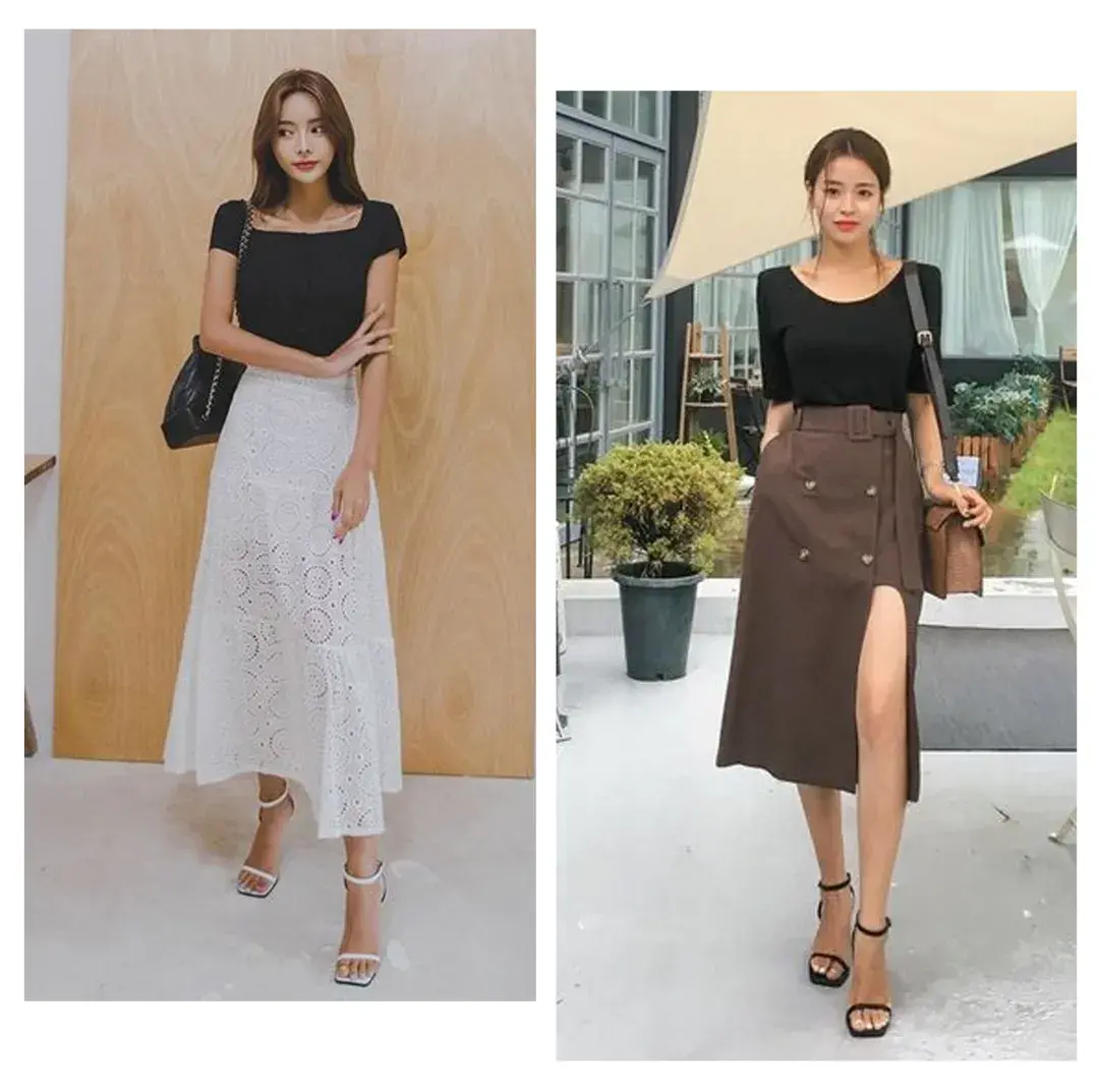 The white lace skirt with its own fairy spirit is a good choice for those who like princess style, so it is best to pair it with a black t-shirt Simple and effortless. For friends who like to be smart and neat, pair a brown skirt with strong lines with a black T-shirt to further reflect the handsomeness of the workplace elite.