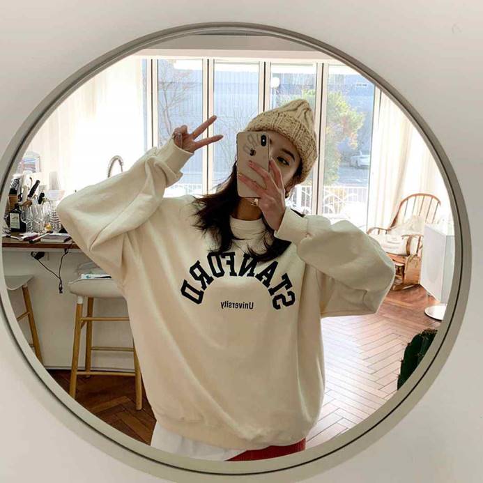 On sweatshirt The designs are usually letters.Almost the only difference is in the design of the letters and the color. Sweatshirts are great tops to match, and you can’t go wrong with jeans or casual pants.
