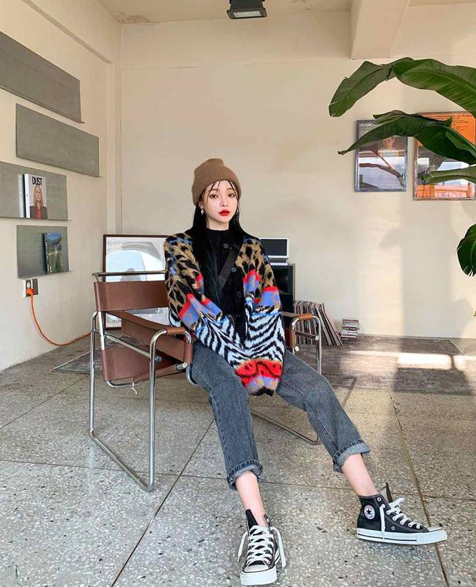 In our I don’t know that when Ruhe chooses clothes, we tend to choose clothes in solid colors, and clothes that are more black and white, so this colorful sweater vest is also very versatile. The color combination will give us a very sunny feeling, and paired with a white inner layer, this outfit will be perfect.