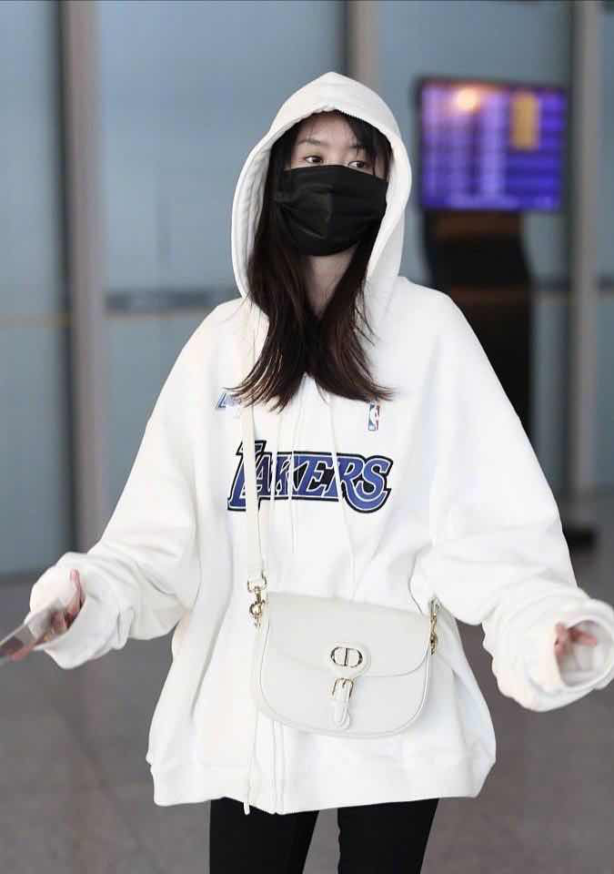 Panasonic Yuan Bingyan is very good at tight matching. The white loose hooded sweatshirt with blue text print shows the street style. It is handsome and trendy. Paired with black tights, it shows off the slim legs. You can’t go wrong with the classic black and white color scheme. In the bleak autumn, if you don’t know how to match it, just learn how to match it with Yuan Bingyan’s black and white sweatshirt, which is comfortable and tender.