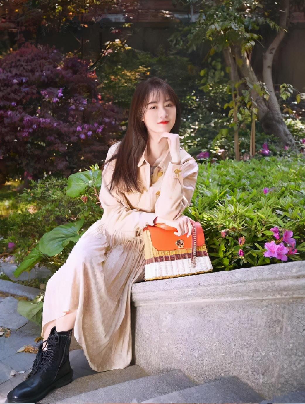 What should I do if I still want to wear a skirt in autumn and winter but I am afraid of the cold? Let’s learn from Yuan Bingyan’s outfit! The apricot floral long dress is warm and ladylike. Paired with a short denim jacket of the same color, it raises the waistline and highlights the proportions of the lower body. Paired with Martin boots, it is very handsome. The gentle temperament and trendy style are integrated into one outfit. Good looking and fashionable!