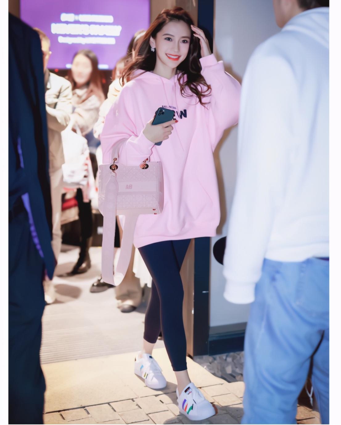 Yang Ying’s latest private clothes are so pink and tender that she looks like she is 18 years old (the angle of the sweatshirt and leggings makes her legs look a bit short)