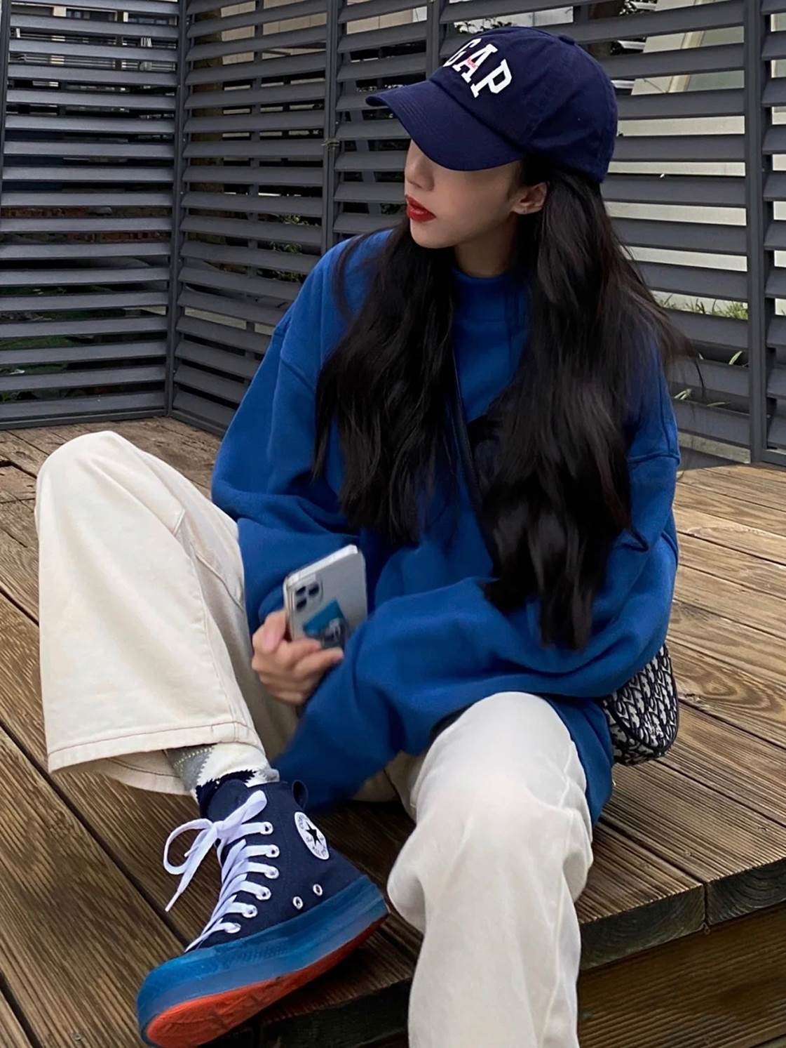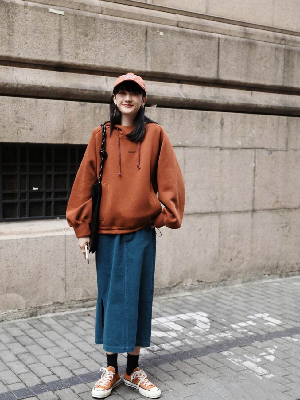 Girls with a casual style can’t work hard on the style, so they can focus on color matching. Using shoes and hats of the same color as the sweatshirt will give a more integrated feel. The use of contrasting colors can give people more impact.