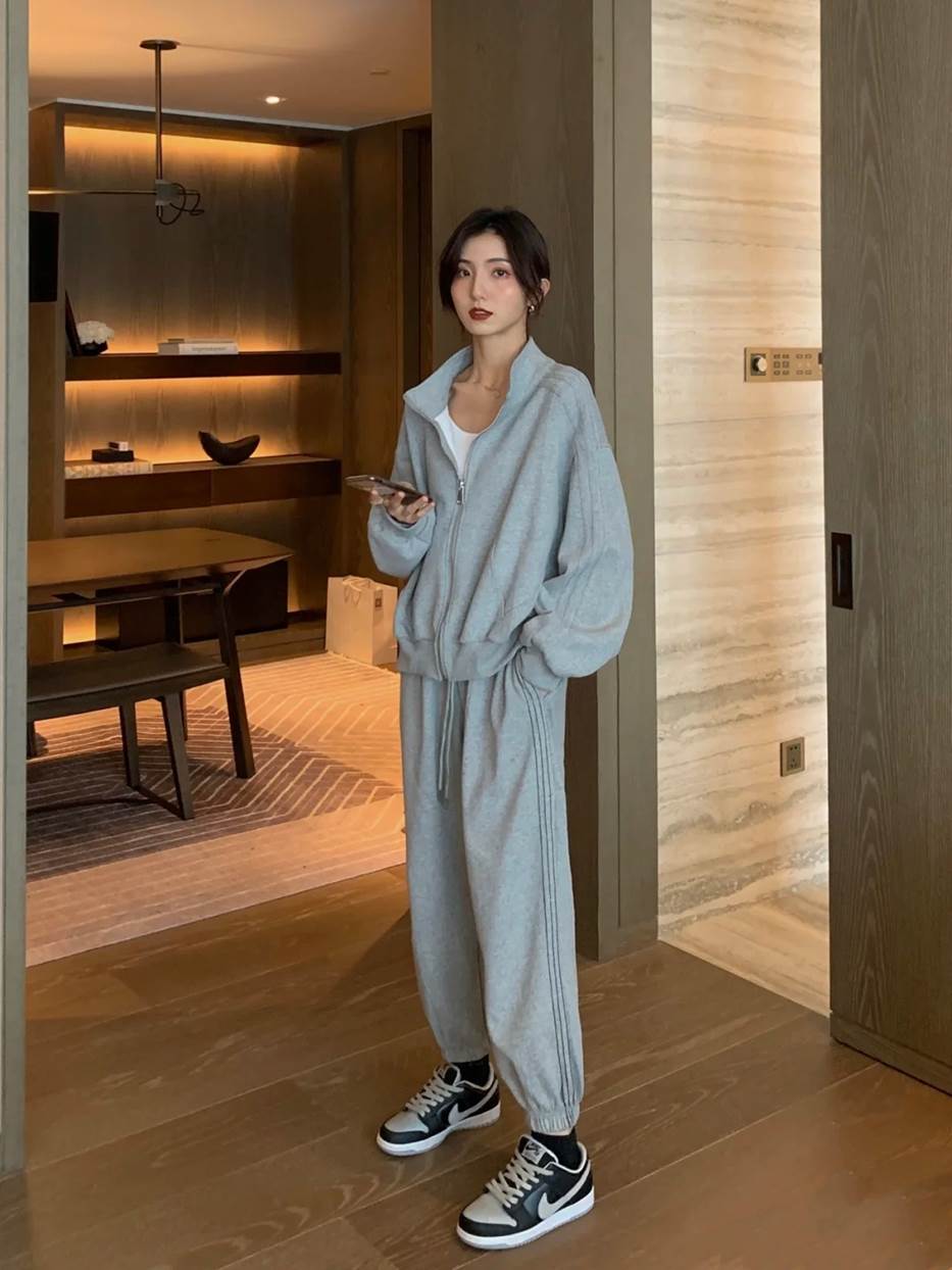 This short sweatshirt It is a popular model this year, and the set is also very convenient and hassle-free. Pairing it with a pair of light-colored dad shoes and an armpit bag is both sweet and salty. Even in the mid-autumn temperature, the waistcoat line of a sports girl is exposed. Of course, I don’t have a waistcoat.�, but it feels like it can be penetrated even if you suck on your belly~
