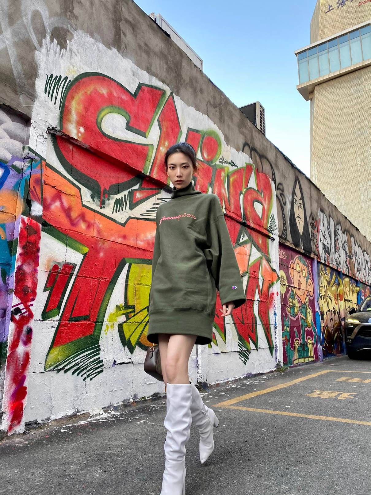 Sweatshirt It is the favorite of many cool girls~it looks great with any outfit, especially if tall girls wear oversize, it will look very boyfriend-like. Cool girls who don’t want to wear all black can wear any color pants like the pattern on the sweatshirt, which is cool and eye-catching. Of course, cool girls can’t live without a bucket hat~ Wearing a bucket hat with a concave shape is very cool.
