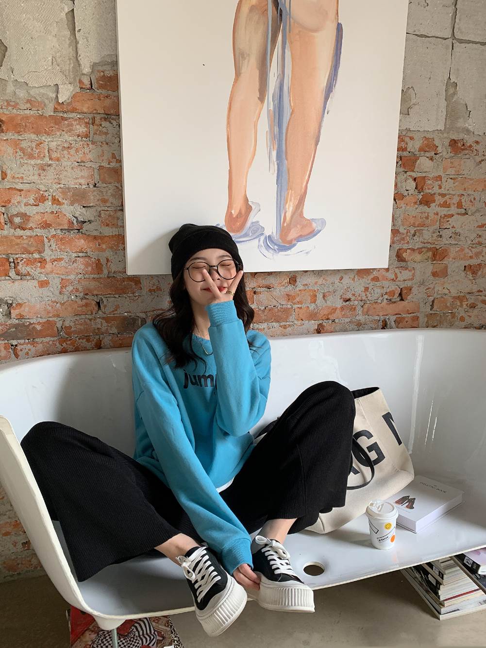 If you want to wear a sweatshirt with style, it is best to wear it with tight tops and bottoms. The editor strongly recommends fairies with straight legs to try this kind of sweatshirt paired with tight-fitting leggings. The fashion sense of the sweater will instantly rise. The big dad shoes also show off the slender legs. Girls who have good legs and are slightly chubby can also give it a try~