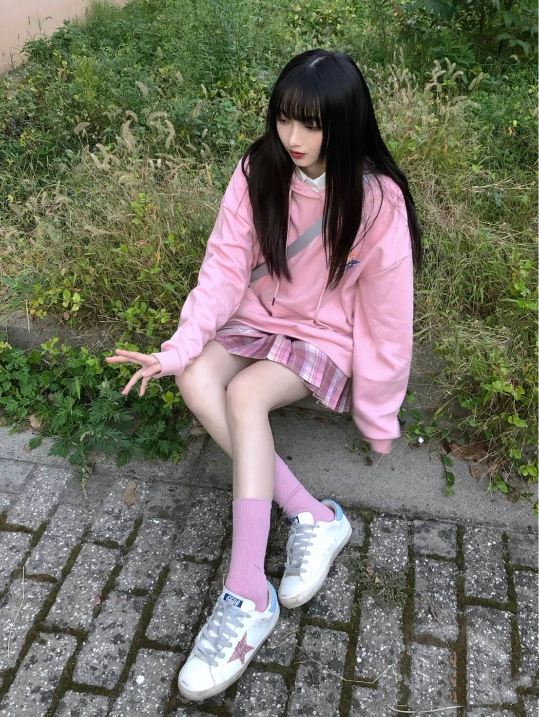 How can a sweatshirt be so versatile without being sweet-girl style? The pink sweatshirt and pink plaid skirt are full of girly style. It’s full~ Little fairies who like jk can wear a cardigan and sweater with a jk suit. Pink is really too sweet. No middle-aged girl can resist the temptation of pink. Of course, fairies with thin legs should not try mid-calf socks easily.