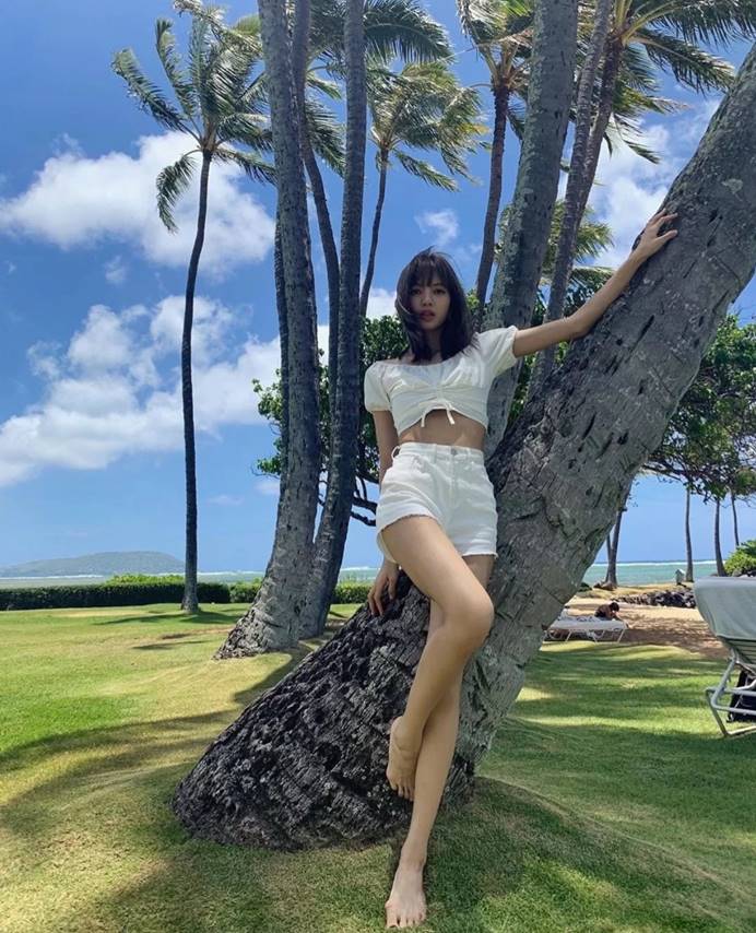 When she was at the beach, LISA was dressed in a summery style. A white short-sleeved top paired with high-waisted shorts of the same color showed off LISA’s figure. Sisters who are exquisite and have good figures can try this style in summer! But be sure to pay attention to sun protection~