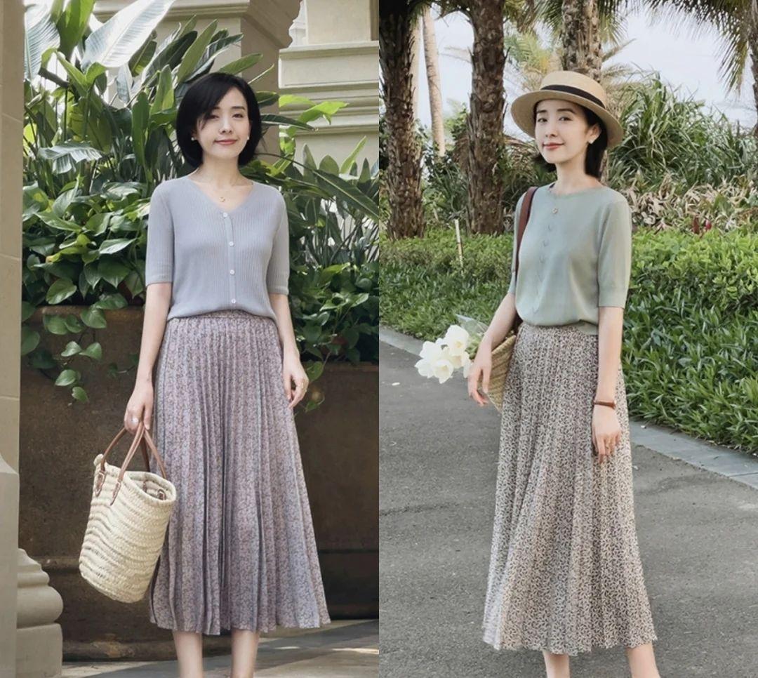 Women in their 40s are most afraid of being ostentatious when dressing. They should try their best whether it is color matching or style selection. Jianfeng, the combination of T-shirt and skirt that you disdain can just highlight the charm of a mature woman.