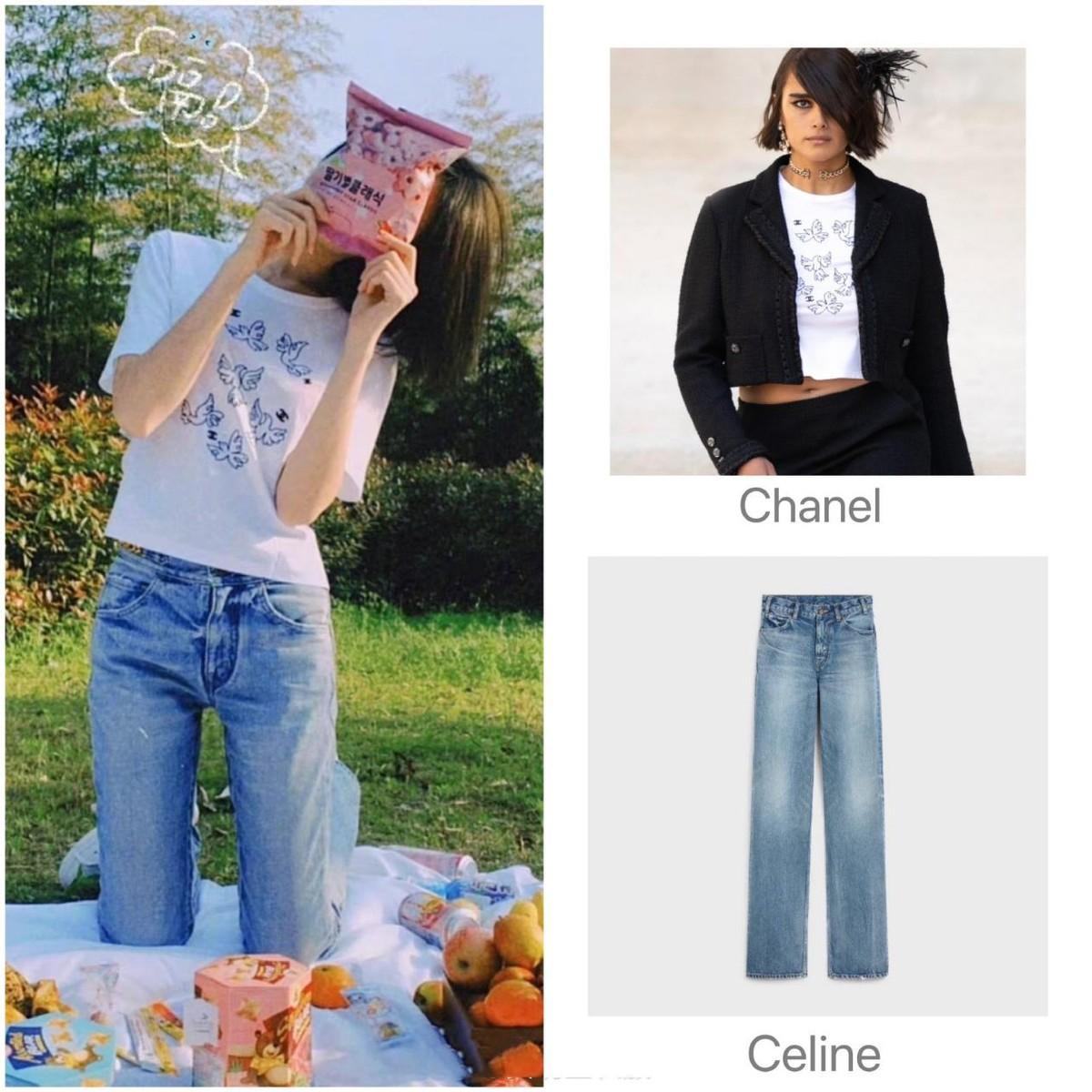 Although this short white T-shirt on Mao Xiaotong looks ordinary, it is produced by a big brand. The basic white T-shirt is refreshing and clean , the style design is neat and capable, and the chest is decorated with a little print with hollow elements, which not only increases the visual richness but also prevents the pure white T-shirt from looking too bland.
