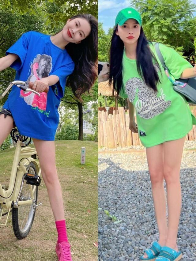 Bright color T-shirt matching The over-the-top shorts focus on the overall matching. They can not only show the colorfulness of midsummer through bright colors, but also highlight the classic matching effect of missing bottoms through the matching of shorts.