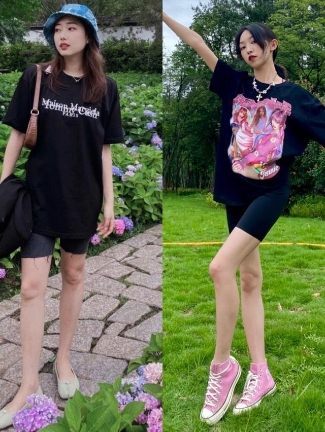 Tight cycling pants It is very popular in 2018, but the requirements for body shape are very high. The combination of slim-fitting cycling pants and loose boyfriend style T-shirts creates a matching effect of elasticity and tightness, which makes the legs feel slender in contrast. The straightness and straightness are vividly presented, but this matching method usually has very high requirements on the body shape. If the legs are not slender enough, don’t try it easily.