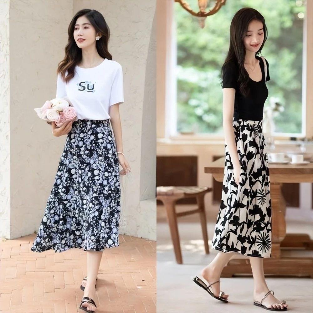 Every midsummer outfit Floral skirts are indispensable. A delicate floral skirt paired with a simple solid-color T-shirt can create a simple-on-the-lower matching effect. The simple color of the upper body can create a low-key visual sense, and the lower body can be paired with exquisite florals. Wind skirts can present a combination of traditional and simple styles.
