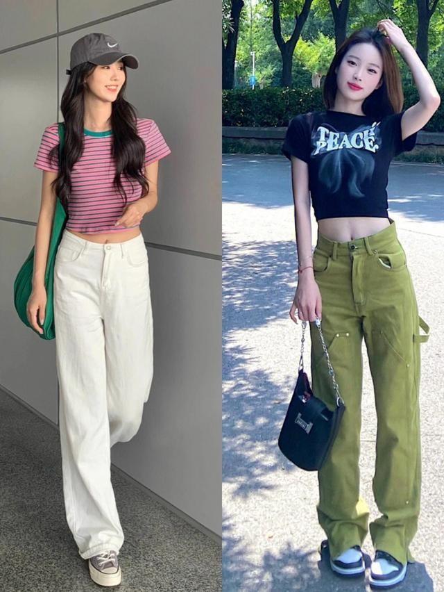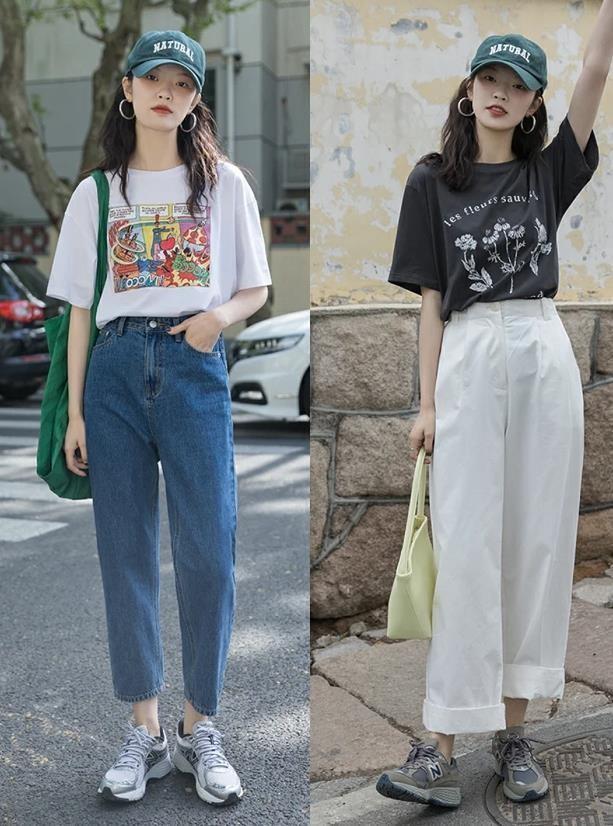 T-shirt and high-waisted pants Relatively speaking, the age restriction of the combination is not so strong. Whether you are a 20-year-old girl or a 30-year-old mature woman, you can boldly try it without worrying about wearing a matching effect that is incompatible with your age.