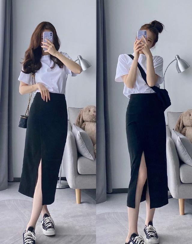Pairing a short T-shirt with a similarly short skirt will create a playful feel in the overall matching of the upper and lower body. This matching method is very cool. In addition to being very breathable, it is also very fashionable. For For young girls in their 20s, it is definitely the best way to show their vitality.