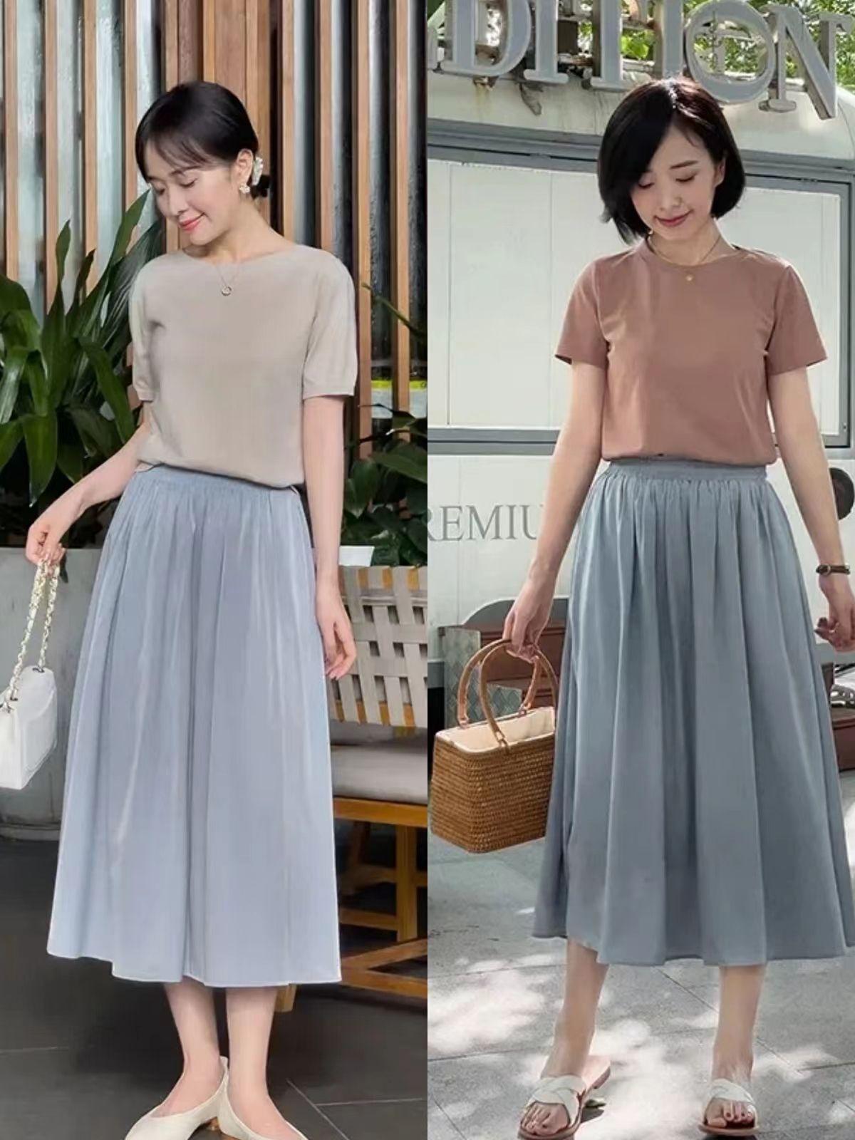 1. Wear “T-shirt + below-the-knee skirt” in summer
