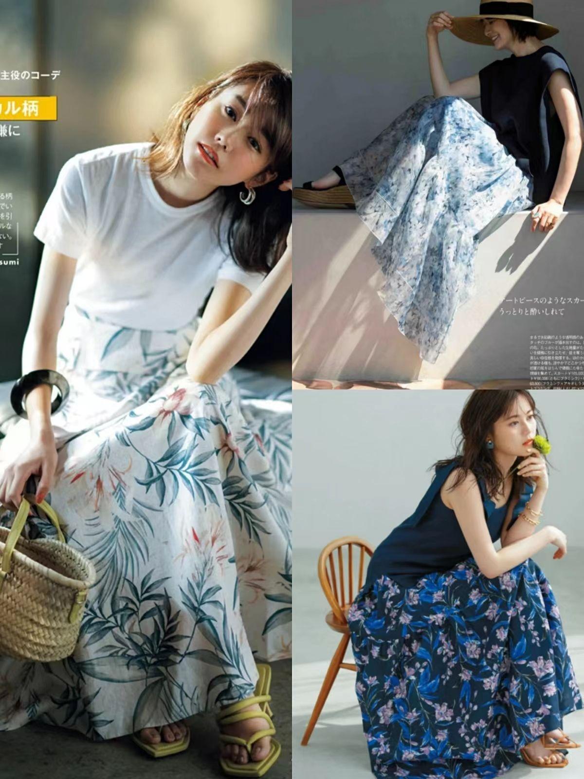 In the pursuit of romantic and gorgeous summer, how to How about not mentioning T-shirt + printed below-the-knee skirt?