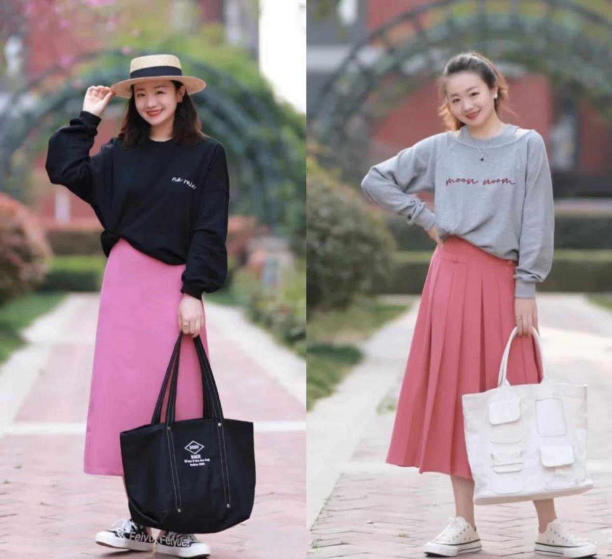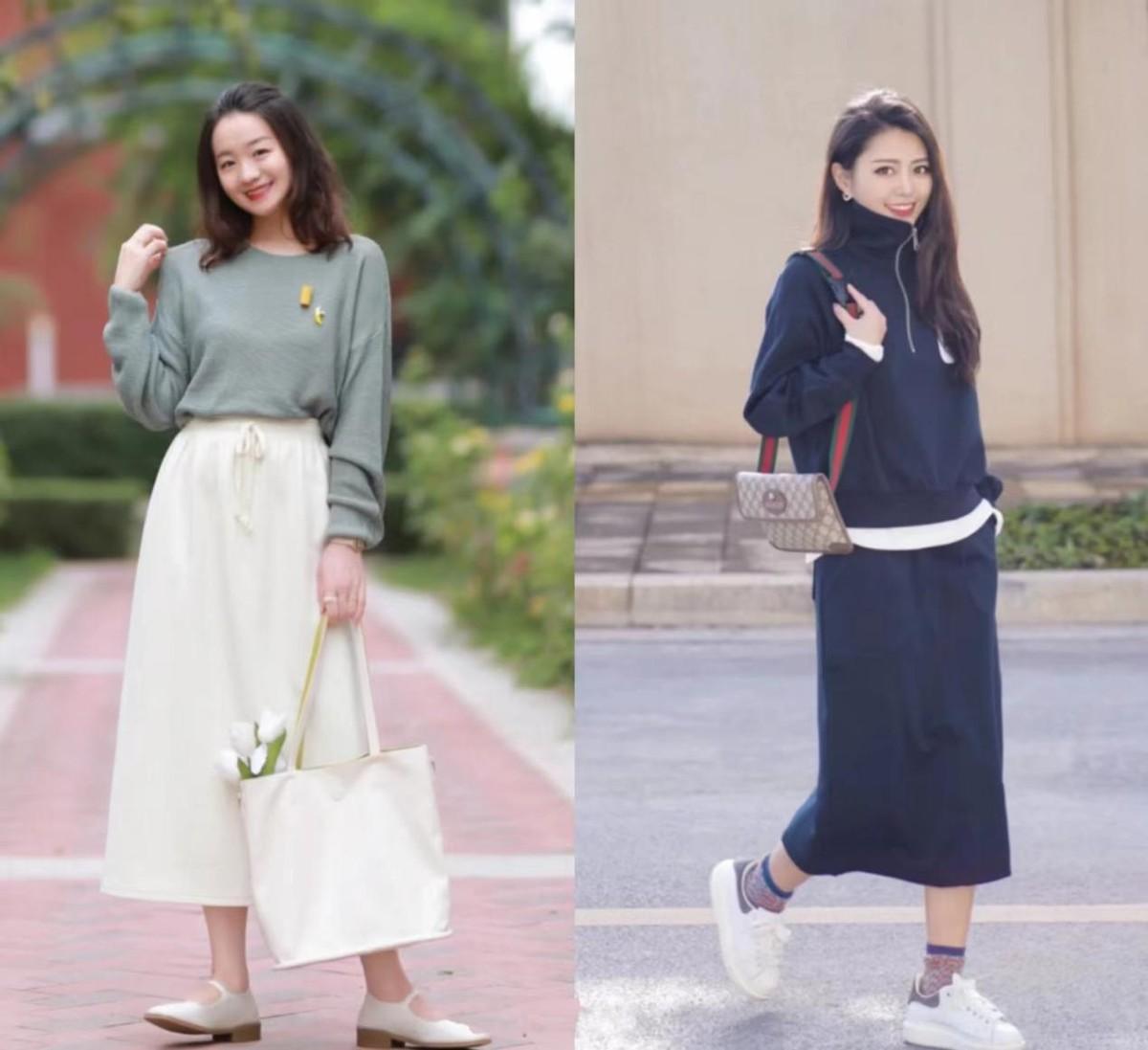 There are many skirts that go well with sweatshirts. For mature women with thick thighs and big buttocks, it is recommended to follow the example of bloggers and choose Shisanxiang. Wear an A-line midi skirt, a high-waisted long skirt with wide pleats, or match a sweatshirt with a sweatshirt skirt to create a look of a suit.