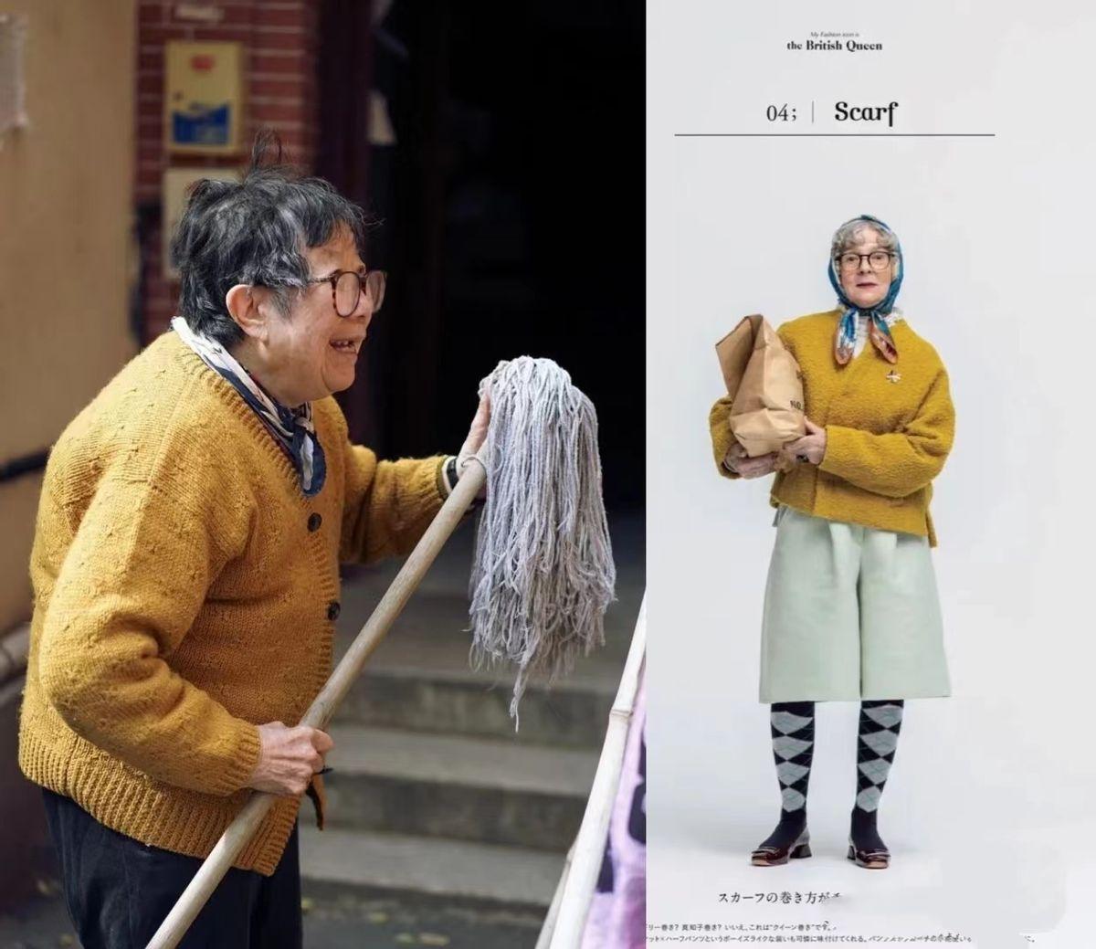 Look at the Shanghai grandma. The grandma in the magazine uses a ginger-yellow grandma blouse to create a spring look, paired with a silk scarf, which is both gentle and delicate.