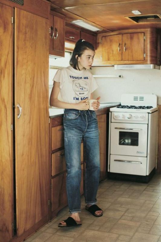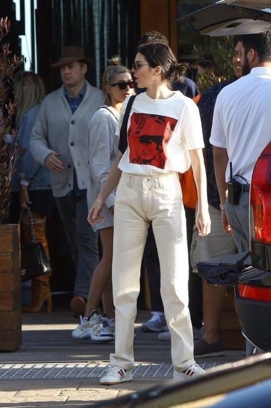White graphic T-shirt looks The age-reducing effect is even more obvious. A simple white graphic T-shirt paired with high-waisted jeans is both slim and versatile. Paired with canvas shoes, it is full of youthfulness.