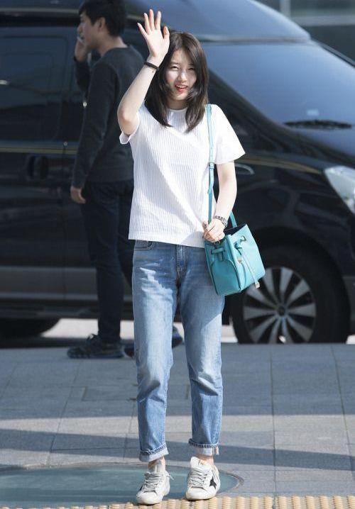 For example, a very fashionable outfit in summer, a white T-shirt paired with jeans is youthful and beautiful, simple yet fashionable, no matter it is Girls of any age will look younger wearing this outfit.