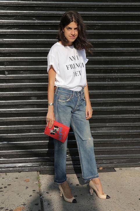 In addition, a pure white T-shirt paired with high-waisted wide-leg pants is also very European and American, and light-colored jeans adopt a high-waisted version. , revealing the waistline, wide-legged trousers that raise the leg line, and paired with a pair of high heels, it looks slim and fashionable.