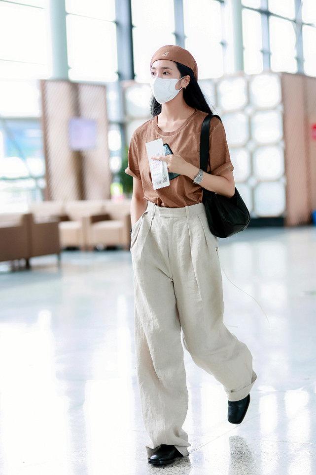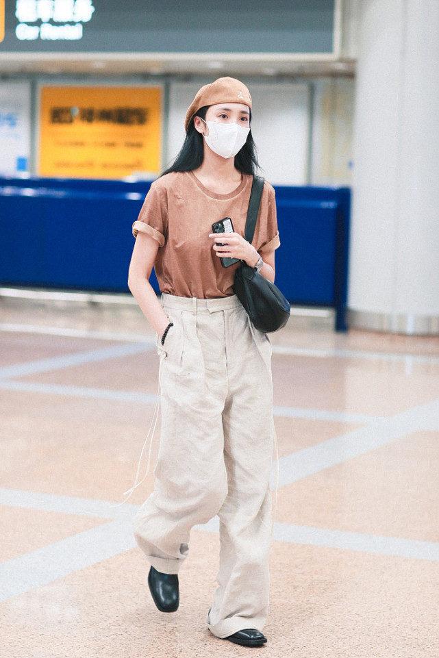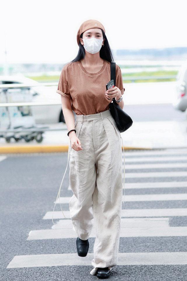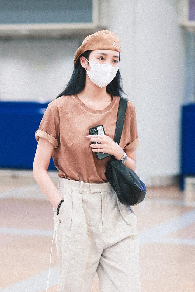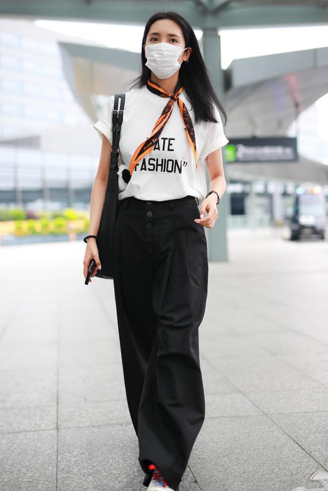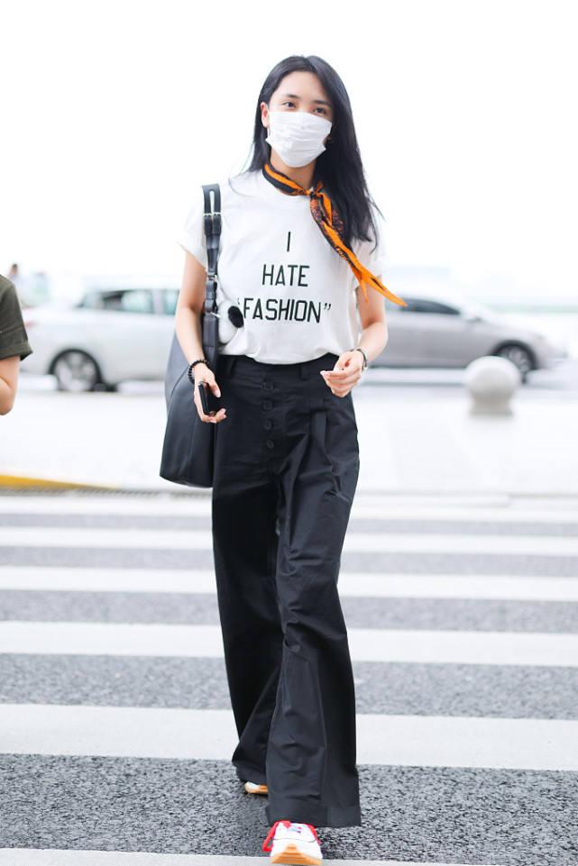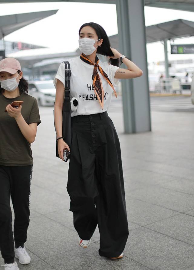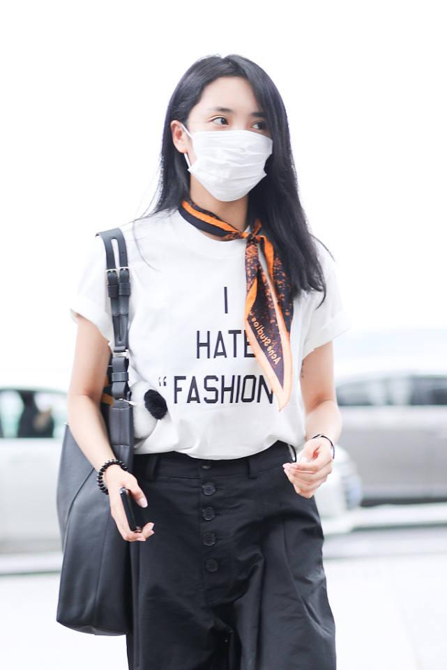 Since we are still in the period of epidemic prevention and control, she appeared at the airport wearing a mask. The long, straight black hairstyle is very neat and aura. This look is entirely in black and white, so the whole person looks particularly clean. It gives people a fresh and refined feeling, which can be said to be very stylish.