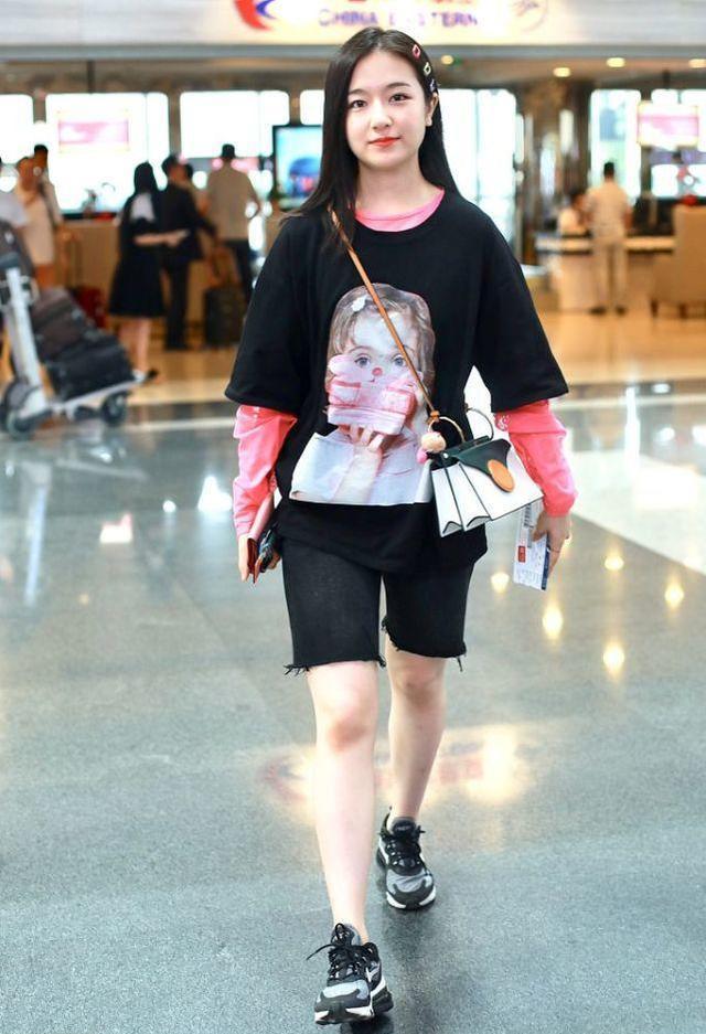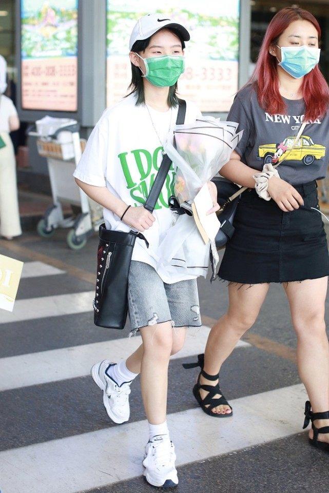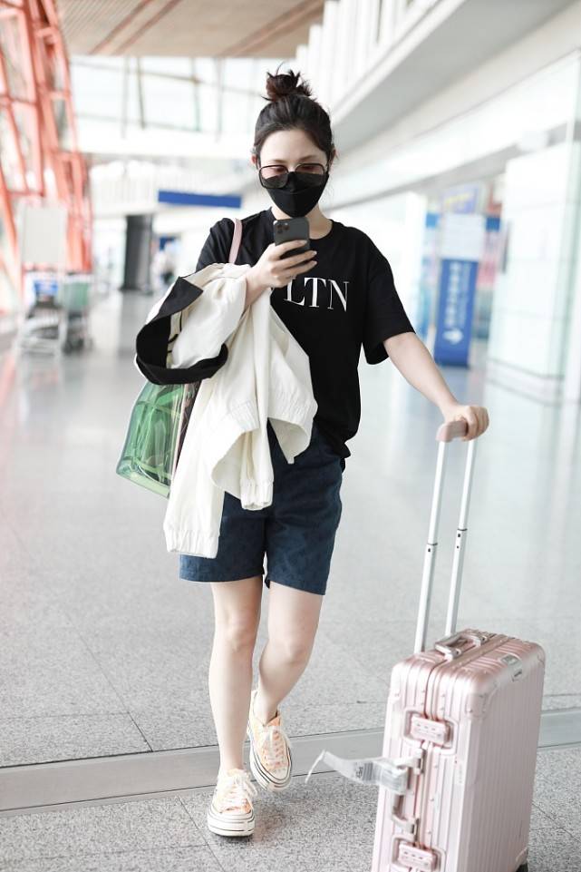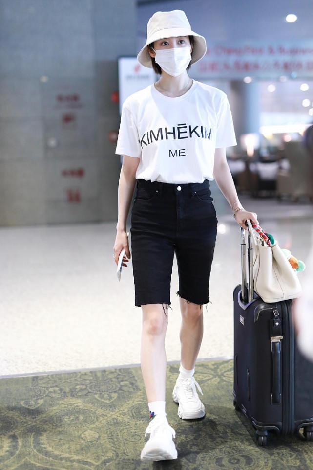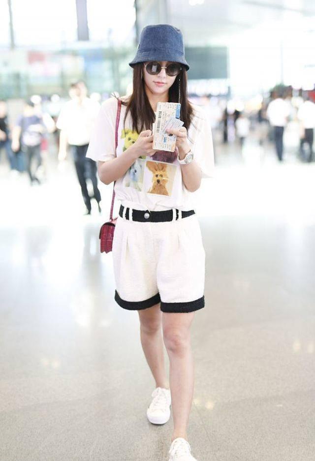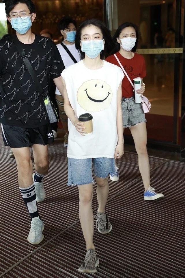 Just like the actress Zhang Xueying, she recently chose such an outfit to appear at the airport. She wore a pair of very casual denim shorts and a sleeveless loose T-shirt. The big smiling face on the T-shirt was very cute, and the overall look was full of energy. Miss Zhang Xueying is wearing a mask, her face is expressionless, and she is really shining as she strides forward! An outfit like this makes even a 30+ girl look girly when she wears it!