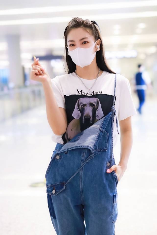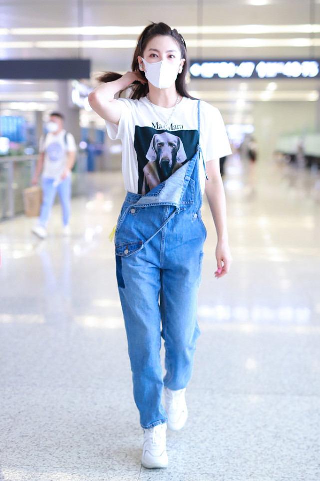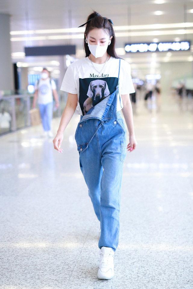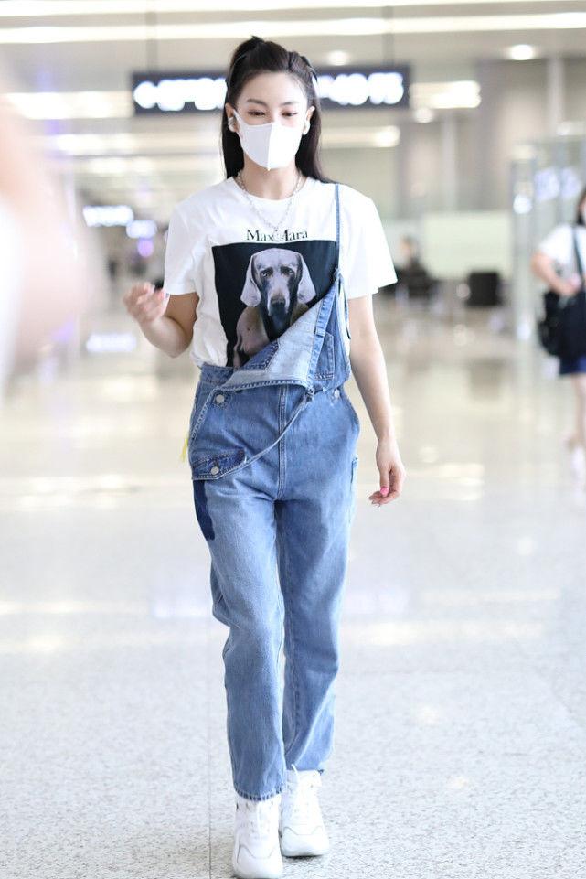 After two rollovers, Zhang Yuqi finally got it right. This time she wore a pair of suspender jeans. Although her upper body was still a white T-shirt that had remained unchanged for a century, it was obvious that when paired with a pair of suspender jeans, the feeling was completely different from before!